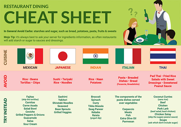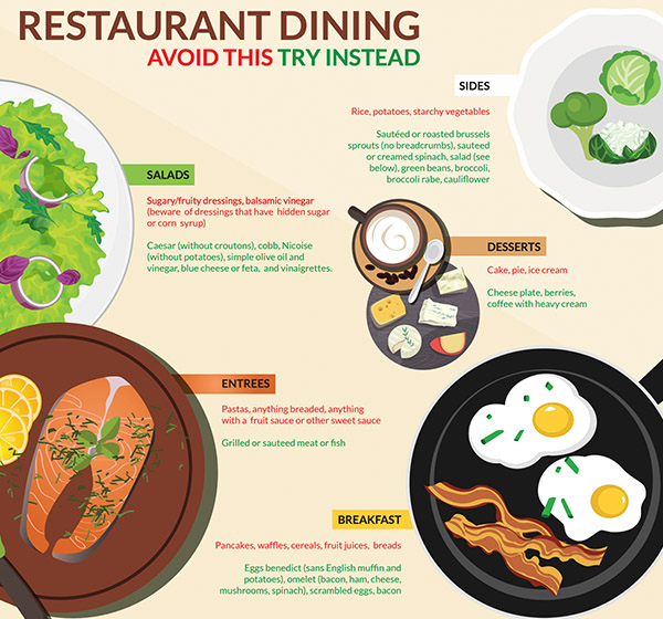 There are many reasons for dining out, from a special occasion, business meal, or date night to simply having no time to cook or wanting to grab a quick meal with friends or family. Here are two visual guides to help you stay on track while eating out!