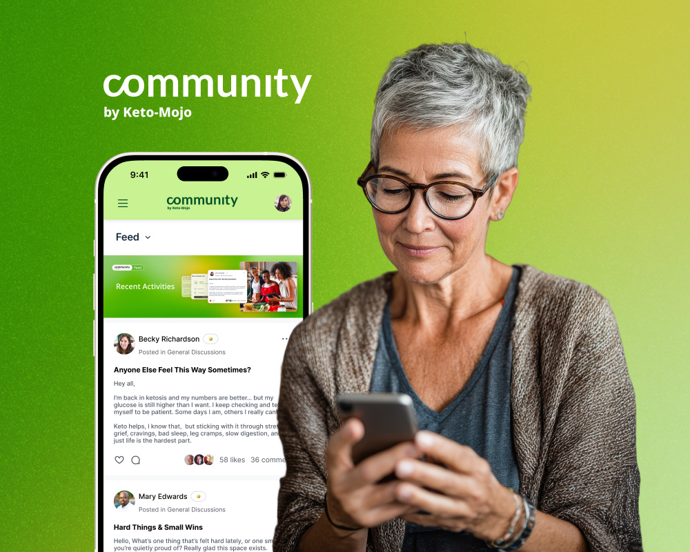 Join the Community by Keto-Mojo, a supportive space for keto enthusiasts moderated by nutrition experts. Inside, you’ll find discussions, live meetings, recipes, tools, expert Q&As, science, and 24/7 encouragement from people who truly understand your journey. We’d love to have you join us today!