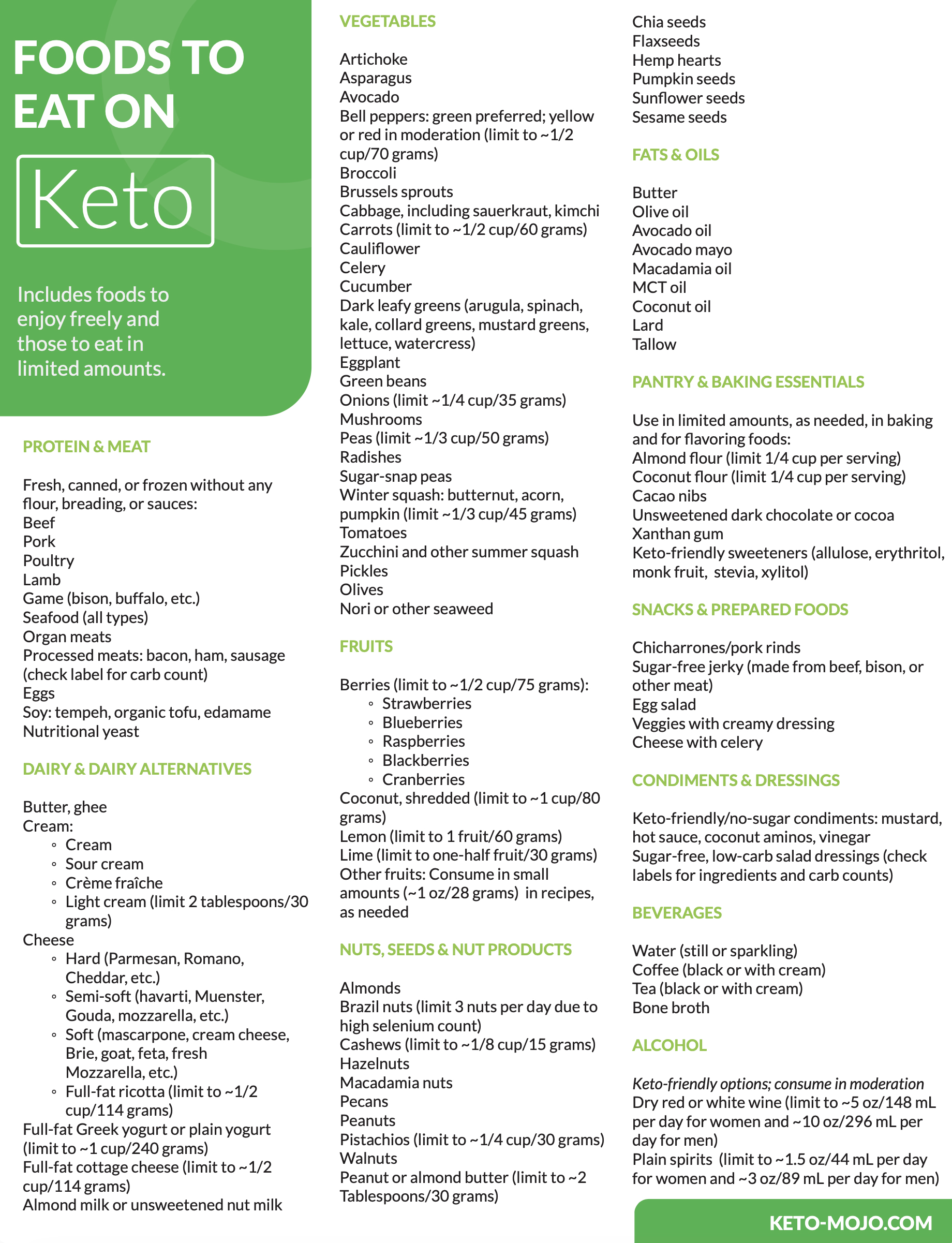 The Ketogenic Metabolic Health Triangle shows a wide range of foods that can fit into a ketogenic lifestyle. Below, you’ll find a more comprehensive list that you can refer to when planning meals and making everyday keto-friendly choices.